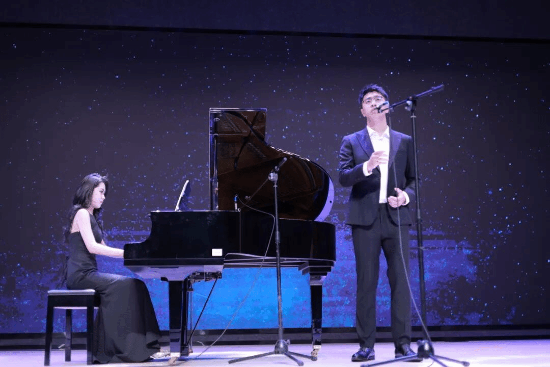 叶炜豪同学的男声独唱《晚星颂》,在俞谦悦的钢琴伴奏下,为观众带来了一场听觉盛宴。叶炜豪富有磁性的嗓音,将晚星的静谧与美好娓娓道来,歌声中充满了对自然的赞美与对生活的热爱,营造出浪漫而温馨的氛围。