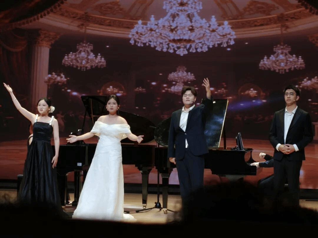 李浩琪、葛俊麟带来的二重唱《双唇缄默》,以默契的配合和富有感染力的演唱,展现了歌曲中复杂的情感;杨宇娜的女声独唱《为艺术为爱情》,用深情的歌声诠释了艺术家对艺术与爱情的执着追求;施明辉的男声独唱《你是我心中的一切》,以激昂的情绪唱出了心中的炽热情感;李倩、胡道燕的二重唱《待微风轻轻拂过》,歌声温柔细腻,仿佛微风拂面;丁诗蕙的女声独唱《她抬头仰望》,用独特的嗓音演绎出歌曲的韵味。最后,全体演唱者共同带来《饮酒歌》,在侍琪钧、张尧的钢琴伴奏下,欢快的节奏和激昂的歌声,让全场沉浸在欢乐的氛围中。