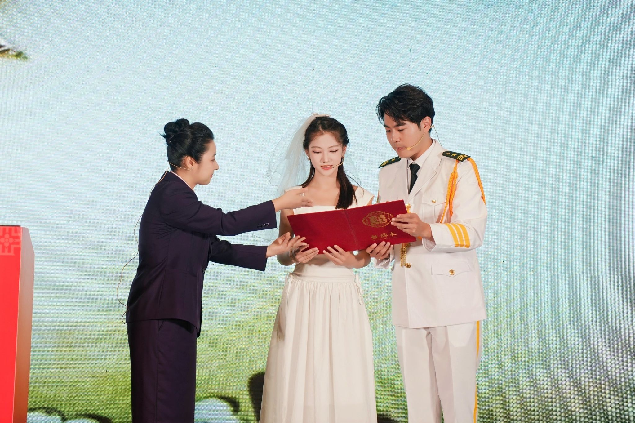 作为宁波市代表队的核心成员,陈兆耀与韩慧充分发挥音乐专业所长,而这背后离不开李凡老师的悉心打磨。从比赛所需的剧情编排到现场的表演指导,李凡老师全程参与,将表演和艺术的的感染力与婚俗场景深度结合——他指导学子们设计符合不同新人特质的颁证环节,细化眼神交流、语气起伏等表演细节,让原本严肃的颁证仪式既保留法律的庄重感,又通过艺术化表达传递出婚姻的温度与温情,充分展现了新时代青年服务社会的专业能力与人文情怀。