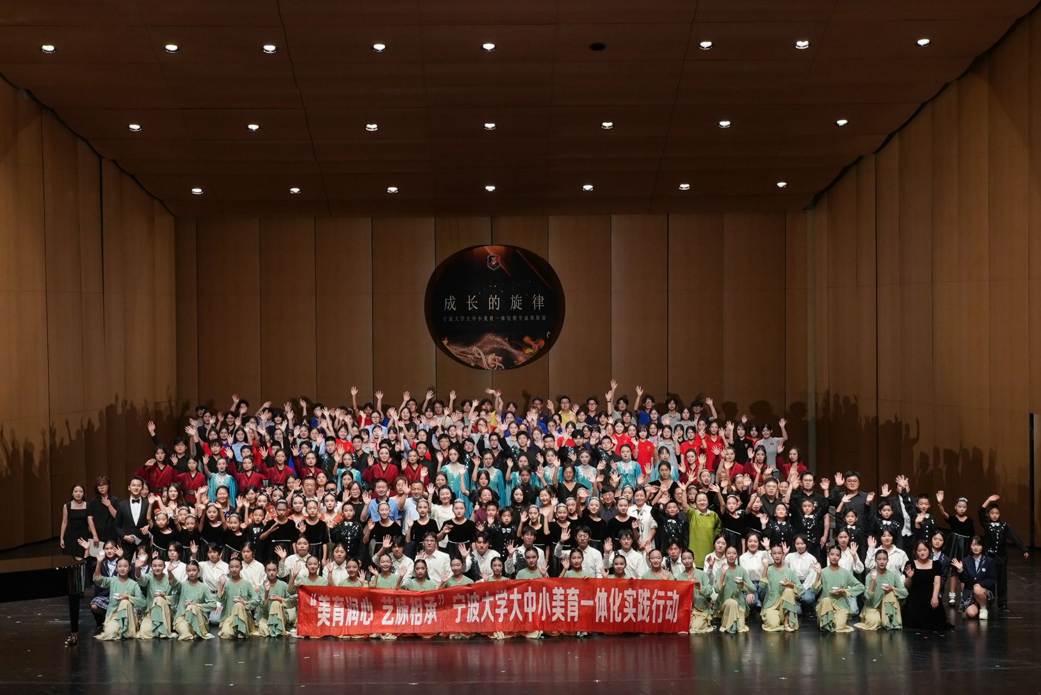 主办、宁波市教育局教研室协办,宁波市鄞州中学、四明中学、外国语学校(浙江省八一学校)、镇安小学共同合作的“成长的旋律——大中小美育一体化教学成果展演”在宁波文化广场大剧院隆重举行。这不仅是一场“大中小学”协同演绎的艺术盛会,更是西瓜视频