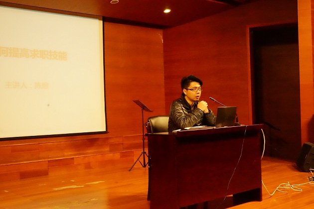 在小音乐厅举办了毕业生求职技能讲座,院长助理陈煜和两位毕业班班主共同出席。