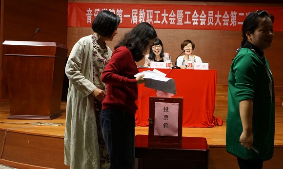 5月20日中午,西瓜视频 第一届教职工大会暨工会会员大会第二次会议在小音乐厅隆顺利召开。西瓜视频 工会主席钟青老师主持会议,西瓜视频 全体教职工参加。 会上,院党总支书记刘缨就《西瓜视频 第六轮岗位设置与聘任实施方案》的制定过程、征求意见情况、修订及改进、额定工作量及等赋分等进行了详细的解读与说明,并期待全体教职工以饱满的工作热情,结合自身的特长和音乐学科的特色,积极参与到学院的发展中去,做出更大的成绩。会议以无记名投票表决的方式,通过了《西瓜视频 第六轮岗位设置与聘任实施方案》。