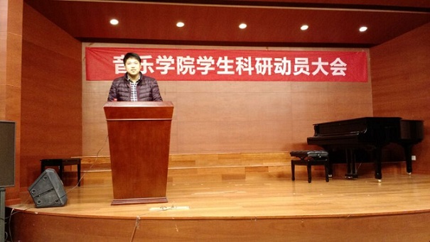2015年12月1日在西区小音乐厅开展了学生科研动员大会,动员大会在院长助理陈煜老师的主持下开始,学院有幸邀请到校团委副书记周星宇老师来做动员报告。