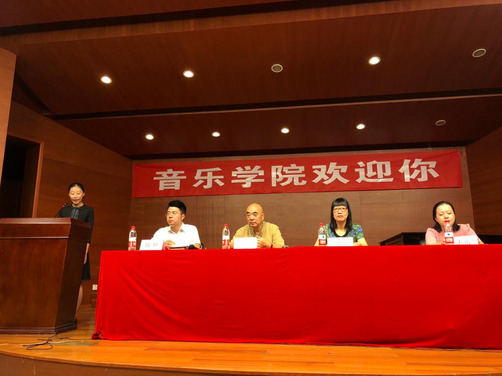 2018级新生开学典礼暨入学教育在西区小音乐厅顺利举行,院长俞子正、院党总支书记刘缨、副院长王蕾出席,院学工办主任陈煜主持。