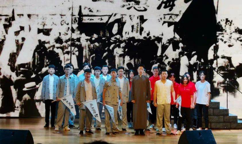 “红色文艺轻骑队”暑期社会实践小分队来到中国共产党的诞生地——嘉兴,为当地的党员群众奉献了一场深刻、厚重的原创音乐剧《初心晨启·宣言》。