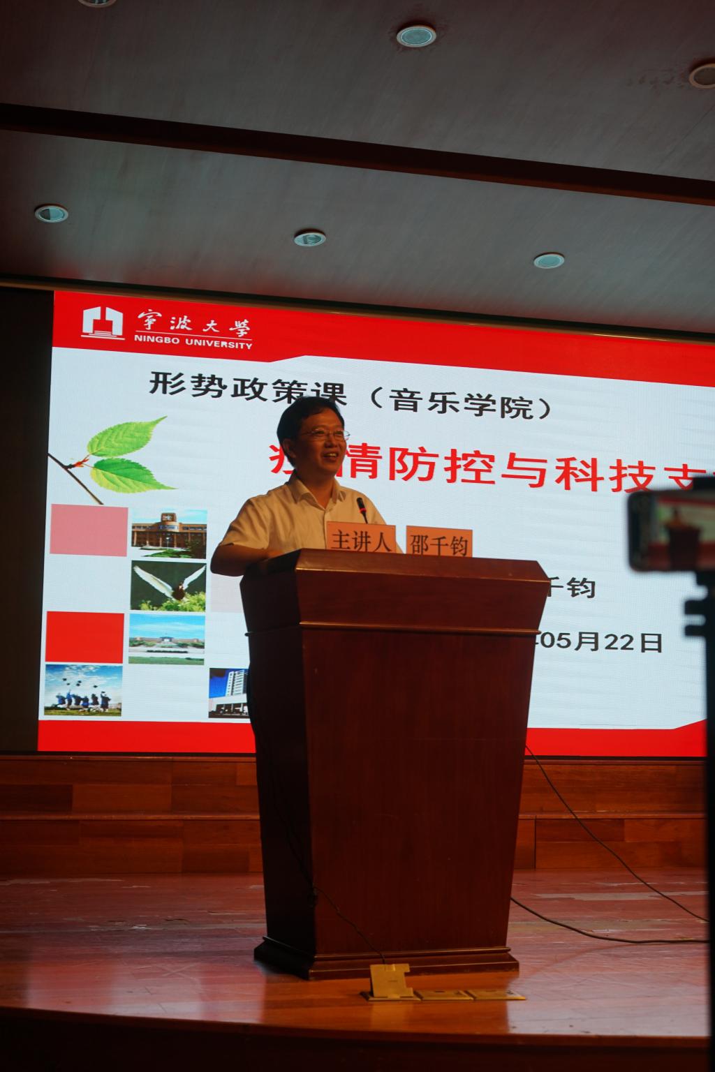 师生开讲“新时代的中国”思政大讲堂,主讲题为“疫情防控与科技支撑”的形势与政策课, 200余名师生参与听讲,此课也作为西瓜视频