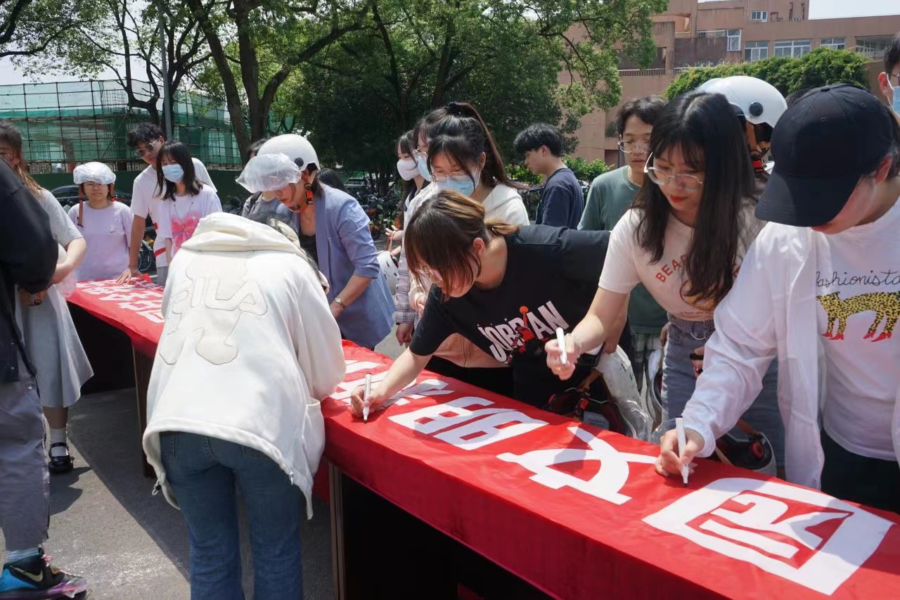 再次,学生代表林子越向大家发出倡议,倡议大家做文明交通的宣传者和践行者,增强交通安全意识,树立交通安全文明公德,认真学习、宣传和遵守交通安全法律法规,从我做起,从现在做起,自觉养成文明交通的良好习惯,为营造平安校园的良好氛围贡献自己的力量。倡议结束后,大家纷纷在印有“校园文明新风尚 校园安全我先行”的横幅上签字承诺。