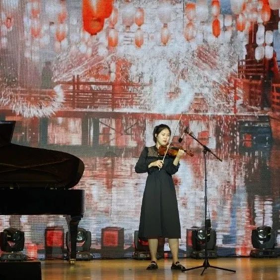极具江南民间特色的民乐合奏曲《采茶舞曲》 作为晚会的开场。《采茶舞曲》原指江南人民在采茶时所唱的歌曲,后改编成了民乐合奏曲。在水墨画的映衬下,民乐团的同学们更添了几分江南的韵味,将整首曲子演绎的惟妙惟肖。