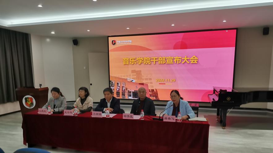11月29日上午10点30分,音乐学院领导干部宣布大会在逸夫艺术楼一楼阶梯教室召开。学校党委副书记、副校长吕朝锋、组织部原副部长王冬梅出席会议。