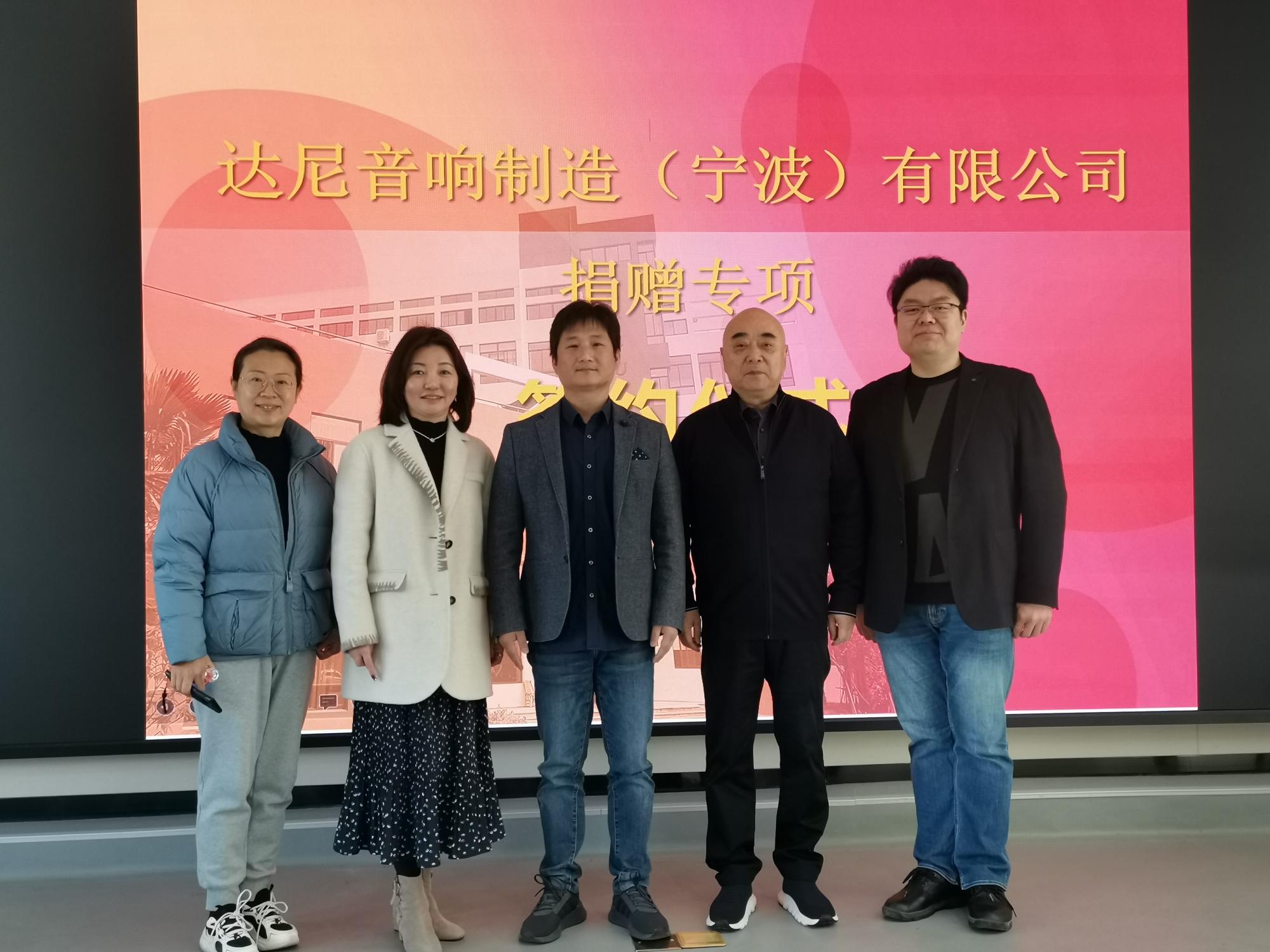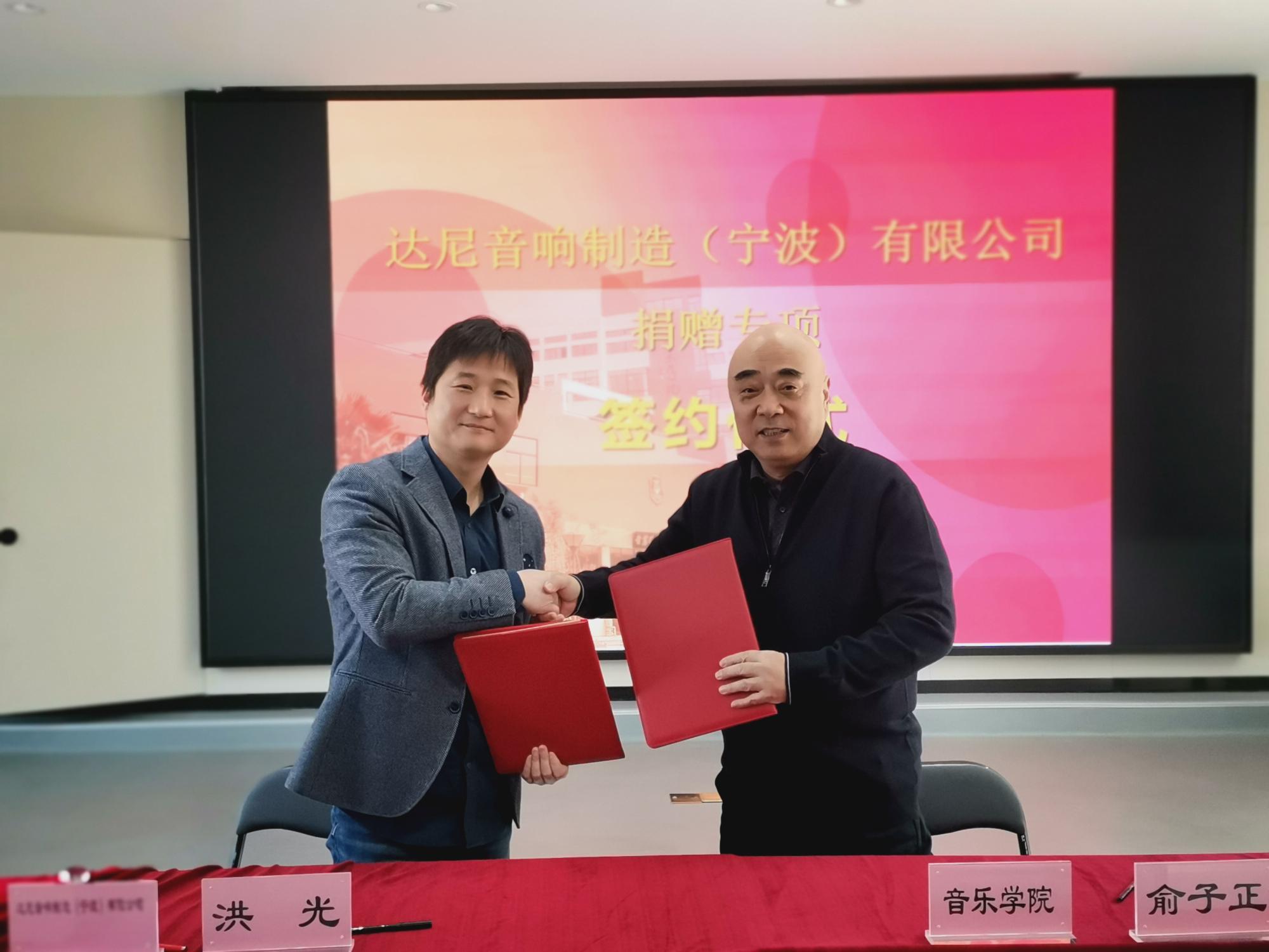 与达尼音响制造(宁波)有限公司签订专项捐赠协议。学院特聘院长俞子正、党委书记孔晓虹与西瓜视频