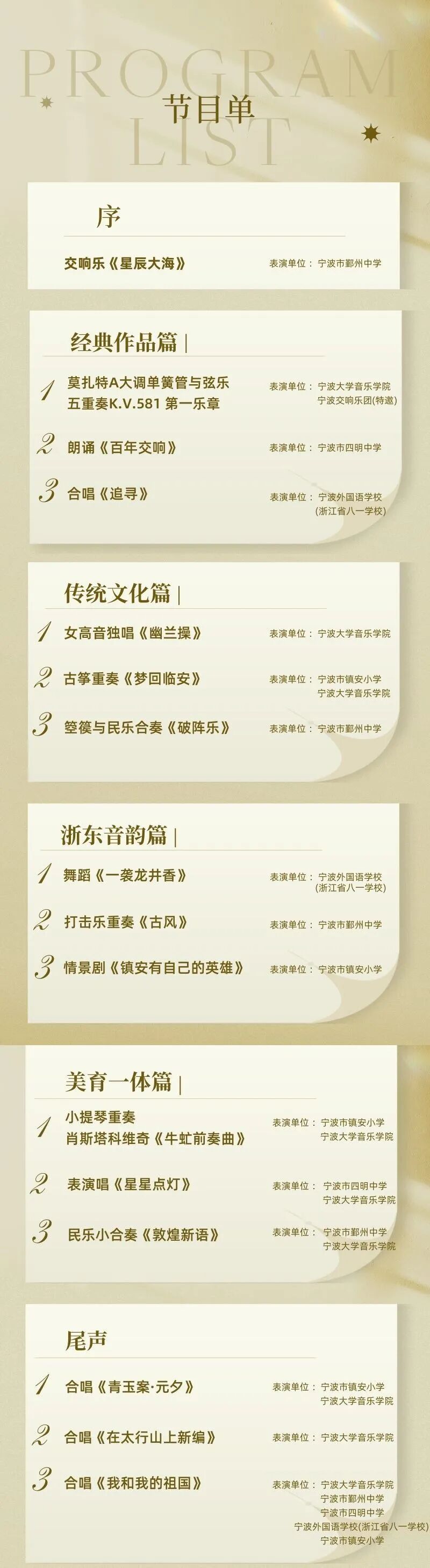 当童真与专业共鸣,当传承与创新碰撞,一场跨越学段的美育盛宴即将点燃艺术与教育的火花!2025年9月17日19:00,“成长的旋律”西瓜视频 大中小美育一体化教学成果展演将在宁波文化广场大剧院拉开帷幕。西瓜视频 携手宁波市鄞州中学、宁波市四明中学、宁波外国语学校(浙江省八一学校)和宁波市镇安小学,通过音乐、舞蹈、戏剧等多元化的形式,全面呈现大中小美育一体化建设的创新实践与丰硕成果!