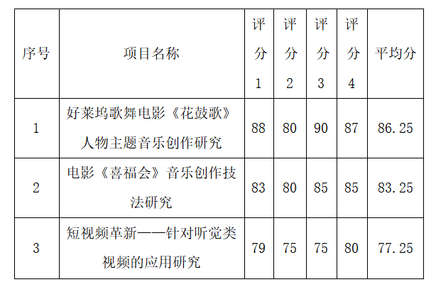 现将提交申请的三个项目专家盲审评分予以公示: