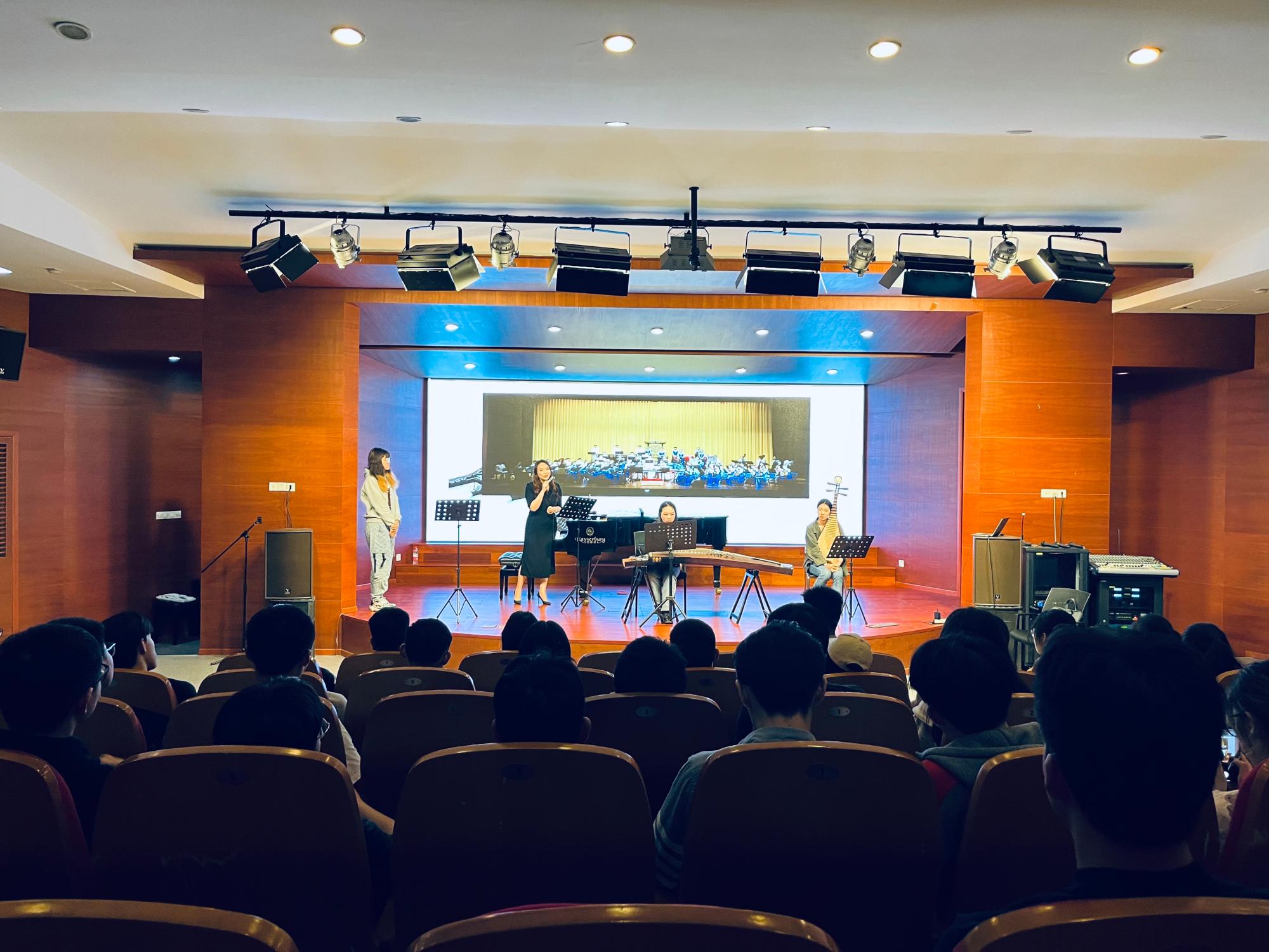 课堂上,学生互动氛围极佳,薛景老师用亲身演奏与要点讲解相结合的方式,给大家带来了视听享受。同时,薛老师还与民乐、合唱的同学们展开合作,展示了钢琴与中国古典音乐、古典文化相互碰撞共鸣出的独特美感,赢得了学生们和在场观摩老师的一致好评。