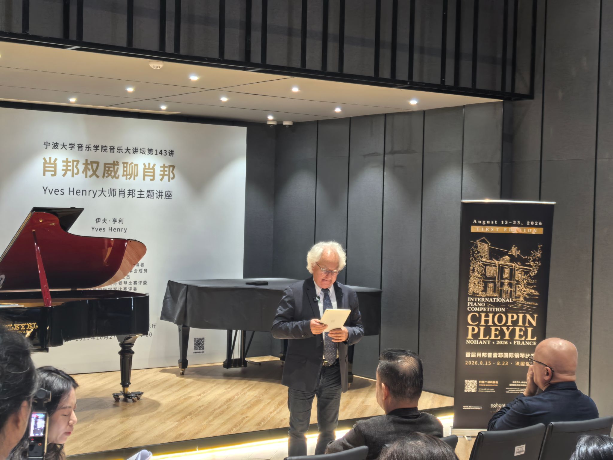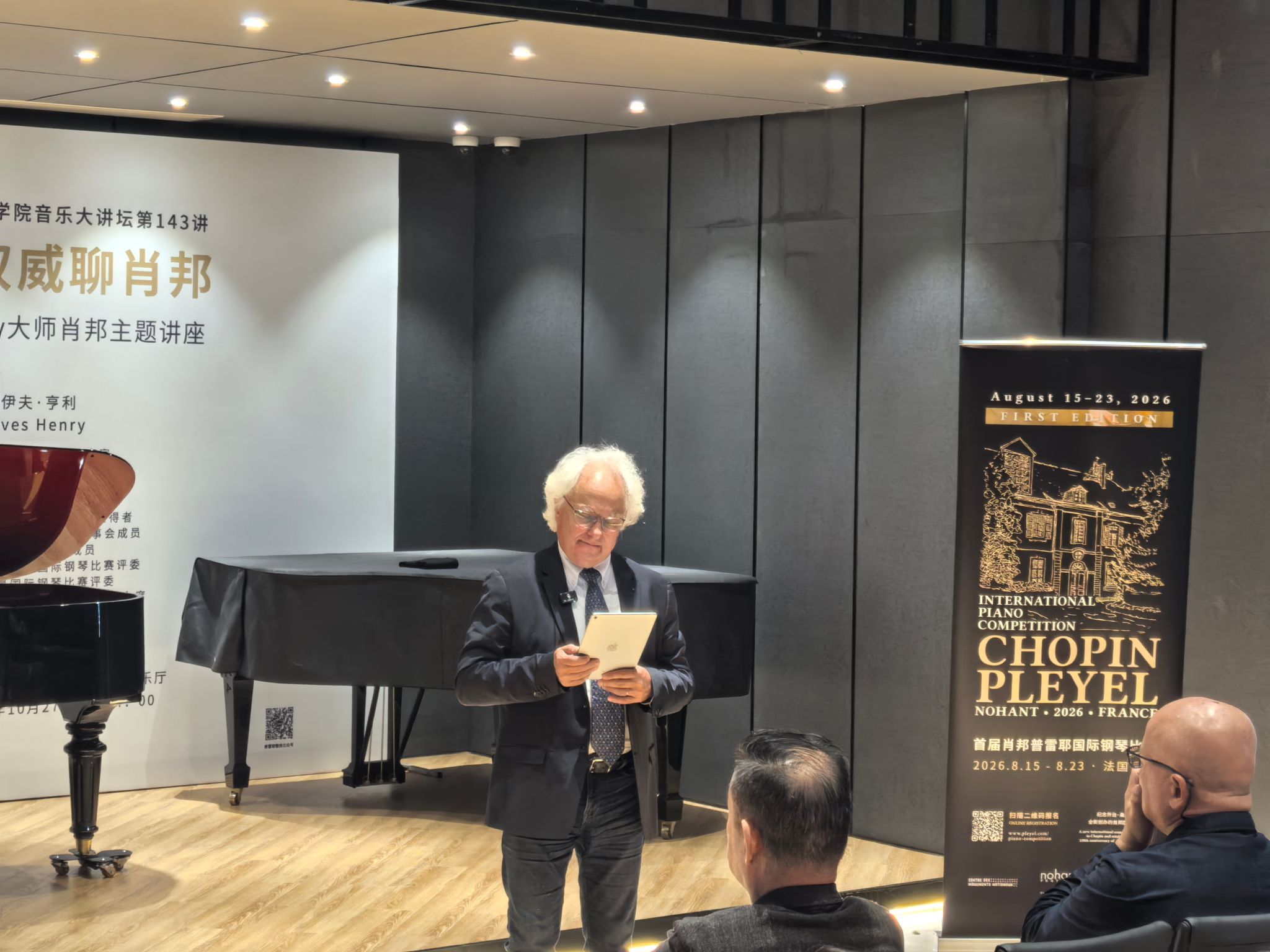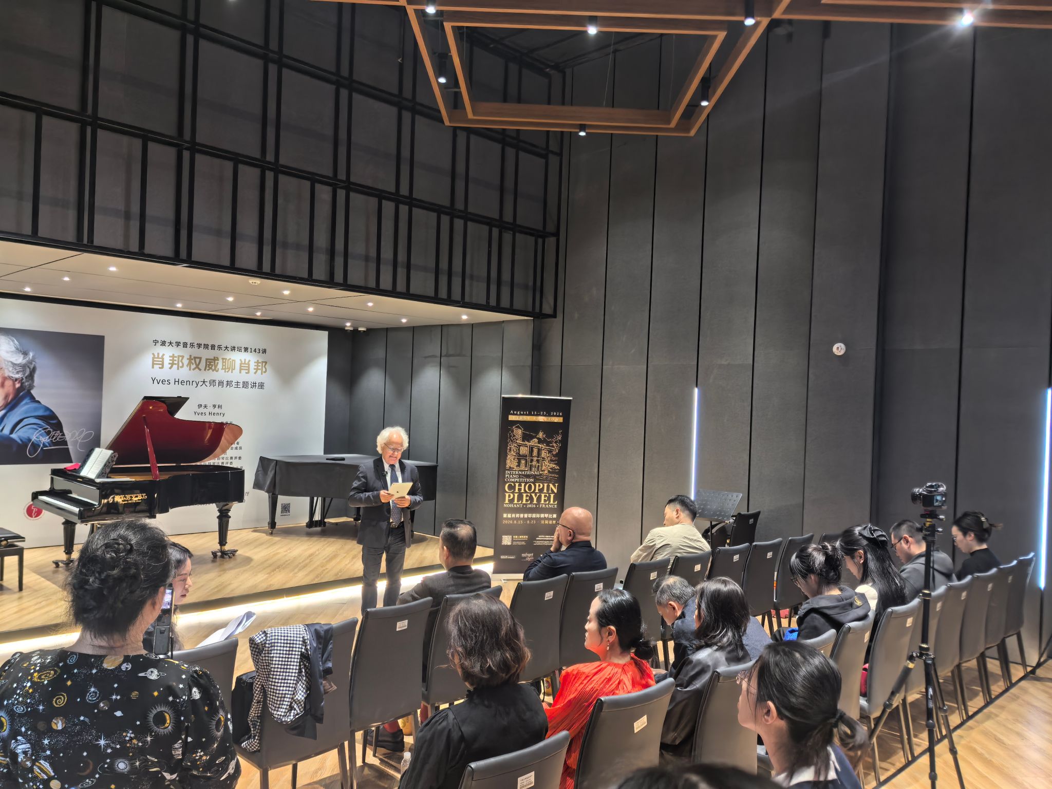 在 "音乐大讲坛第 143 讲" 的讲座环节,伊夫・亨利教授结合自身 2025 年担任肖邦国际钢琴比赛评委的经历,深度解析了本届赛事的评审标准与艺术亮点。