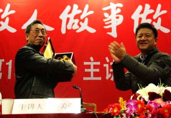 讲座结束后,喻辉院长做了简要小结,并代表学校向姚老赠送纪念品宁波青瓷,彰显姚老的艺术魅力就如同这古越青瓷,历久弥新,弥足珍贵。