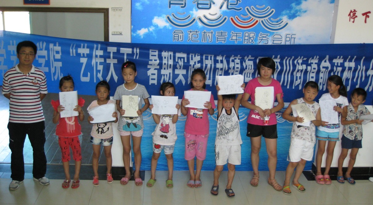 “艺传天下”艺术教育援助行动是我院于2008年来推出的一项青年志愿者服务和暑期社会实践活动品牌,活动秉着“艺术传天下,服务到家门”的宗旨,不仅对城乡中小学生、幼儿园小朋友开展美术、音乐等方面的教育援助,同时还为社区、敬老院开展文艺表演,为企业提供文化建设支持等。四年来,220余名同学相继在镇海区蛟川街道俞范社区、镇海区勤勇村、镇海庄市敬老院、夏金生福利院、镇海后大街社区、镇海区清水浦幼儿园、骆驼街道中心幼儿园,勤勇村幼儿园等10个服务点提供暑期社会实践相关服务。