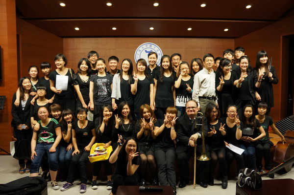 我院学生爵士乐团成立于2011年9月,是国内综合性高校中唯一的一支大学生爵士乐团。爵士乐团由音乐学专业的学生组成,七次美国国务院“富布莱特基金”获得者、美国著名爵士音乐家Tom Smith先生担任乐团的艺术指导。Tom Smith先生就像呵护自己的孩子一样为乐团倾注了大量的心血。爵士乐团的成员们在Tom的精心指导下,学习了大量的爵士音乐作品,从心底里热爱上了这种注重心灵表白和相互间融合的音乐表现形式。我们相信这支乐团会日趋成熟,成为宁大艺术教育的一个特色和亮点。