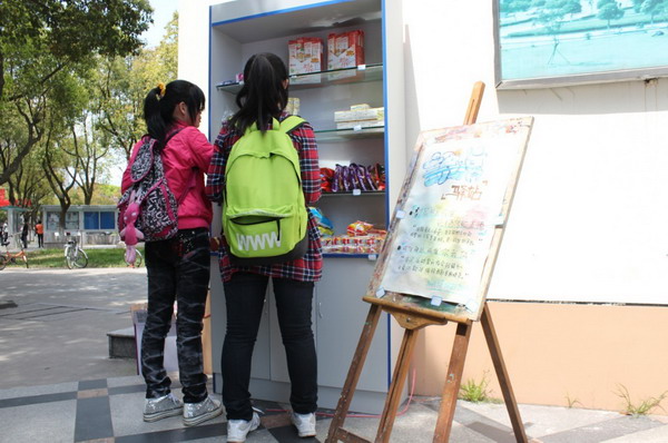 第一餐厅以及南门公寓2号楼便出现了这样的无人售货小柜,它只是一个柜子,上面摆放着很多文具和小食品,师生们看上了,就可以拿走,只需将它所标价的金额,投入柜中的箱子里,这种新鲜的“无人售货小柜”,引起了广大师生的浓厚兴趣,师生们纷纷围观、拍照,饶有兴致地选购货物。