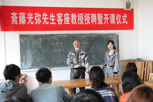 斋藤光弥先生是我院的客座教授,曾多次到访学院,为我院艺术设计系师生授课并作专题演讲,对艺术设计专业的教学、科研等给予了诸多指导,同时对学院的学科发展、专业建设和对外学术交流等也做出了一定的贡献。