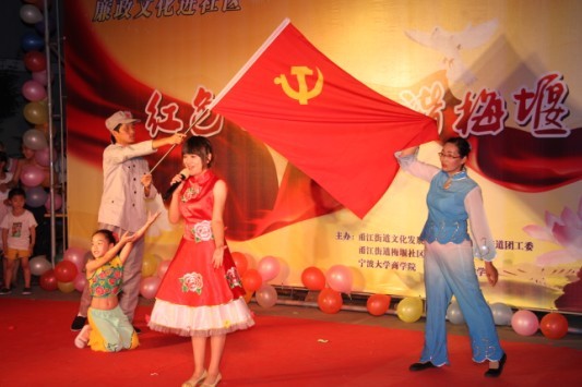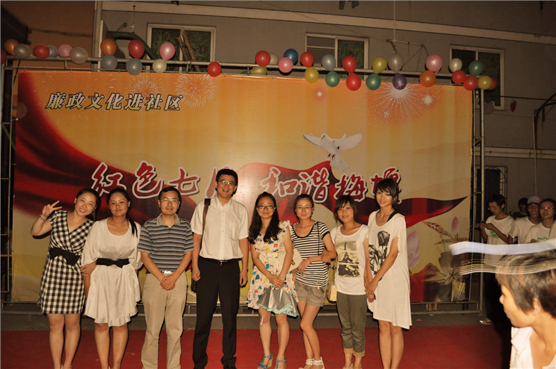 7月18日晚7点,江北区甬江街道梅堰社区的新文化广场上,人头攒动,琴声悠扬,一场精彩的以“红色七月,和谐梅堰”为主题的纳凉晚会正在这里举行,吸引了众多居民驻足观看,为这炎炎夏日吹起一阵和谐、文明、温馨的清风。校团委书记周青、商学院党委书记熊德平、我院党委副书记叶春桥等领导在街道、社区相关负责人的陪同下观看了晚会。