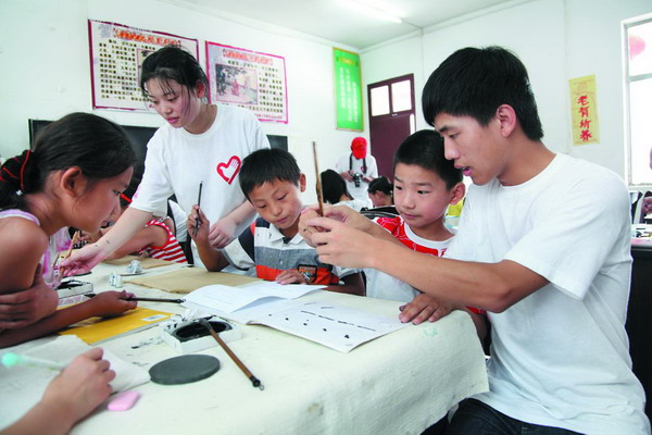 艺术学院艺术5班的15名学生,利用暑假军训的空当,自发组建了“勤艺爱心支教队”,走进勤勇村支教。队长刘鹏介绍,他们上课时间为7月4日至7月19日9:30—12:00,开设的课程有素描、色彩、书法、卡通画、简笔画等。“一来孩子们比较喜欢,二是因为支教队成员个个美术功底扎实。大家还掏钱为孩子们买学习用品。”
