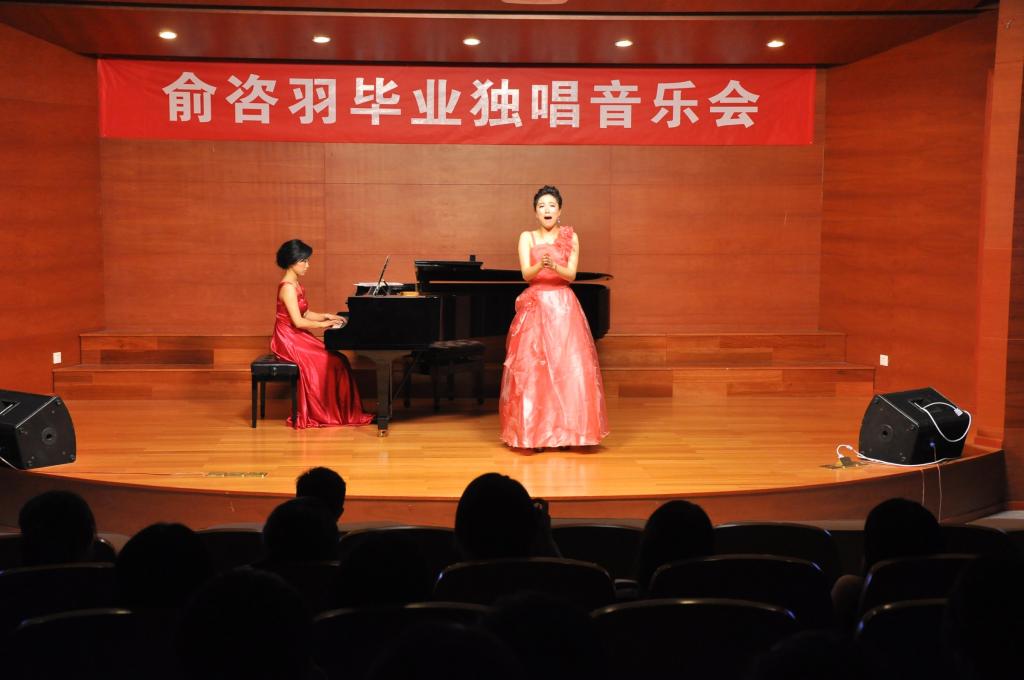 6月9日晚,西校区小音乐厅内回旋着悠扬悦耳的歌声,我院音乐学专业2011届毕业生俞咨羽个人独唱音乐会在这里举行。