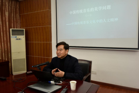 王次炤教授主讲的《中国传统音乐的美学问题》专题学术讲座在厚德楼408会议室举行。本次讲座由杨红光副教授主持,徐志斌老师、朱益芳老师、张晶晶博士、在校研究生、本科生以及浙派名师们共同参加聆听。
