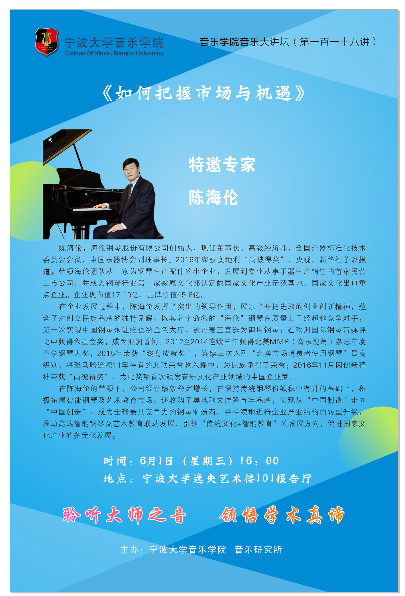 讲座题目:如何把握市场与机遇