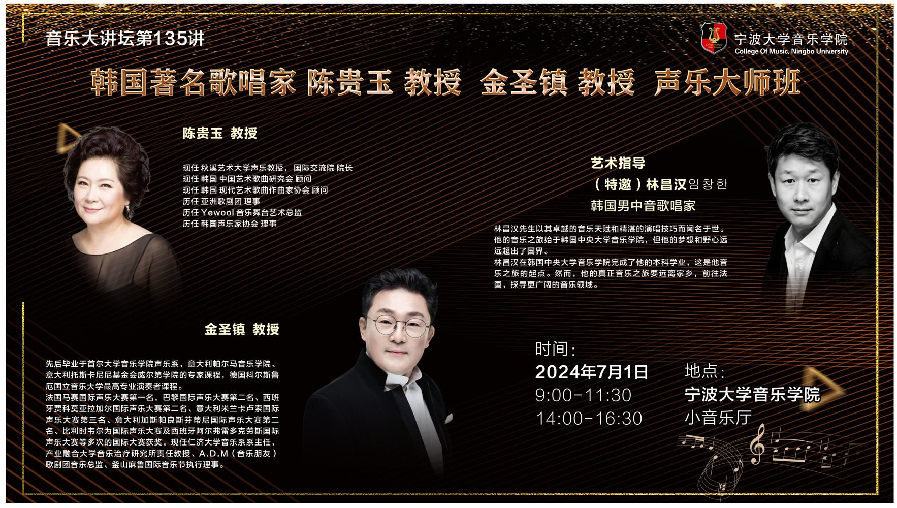 主讲人介绍:陈贵玉,教授,现任秋溪艺术大学声乐教授,国际交流院 院长,现任韩国中国艺术歌曲研究会顾问现任,韩国现代艺术歌曲作曲家协会顾问,历任亚洲歌剧团理事,历任Yewool音乐舞台艺术总监,历任韩国声乐家协会理事。