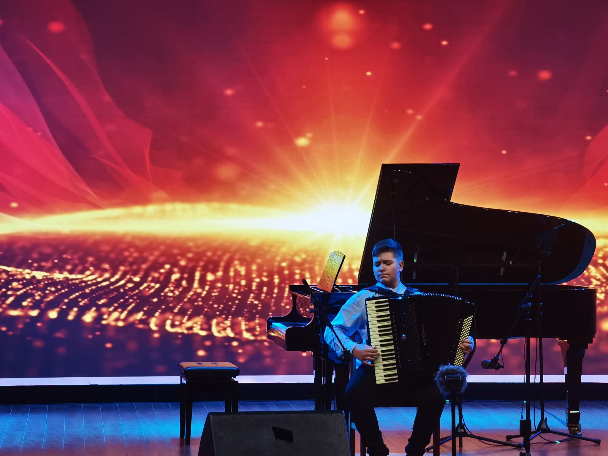 音乐会上,拉开序幕的是年仅14岁的波斯尼亚和黑塞哥维那天才手风琴少年乔尔杰·佩里奇,他曾获得2023年世界杯手风琴锦标赛古典重奏组第二名,他演奏的经典曲目《马德里》《你好朱丽叶》收获热烈掌声。