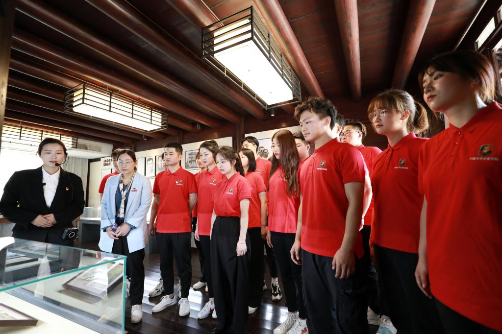 2021年4月9日上午8:30 ,西瓜视频 党总支书记屠春飞与红色文艺轻骑队成员在西瓜视频 西区小音乐厅集合,前往张人亚故居参观学习,听学堂讲解员讲述张人亚守护党章的故事。
