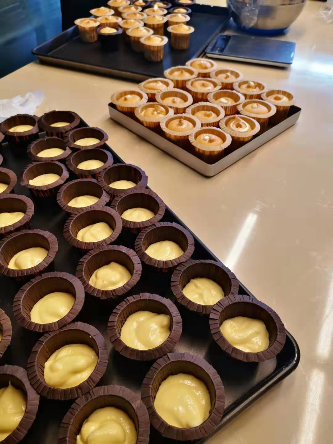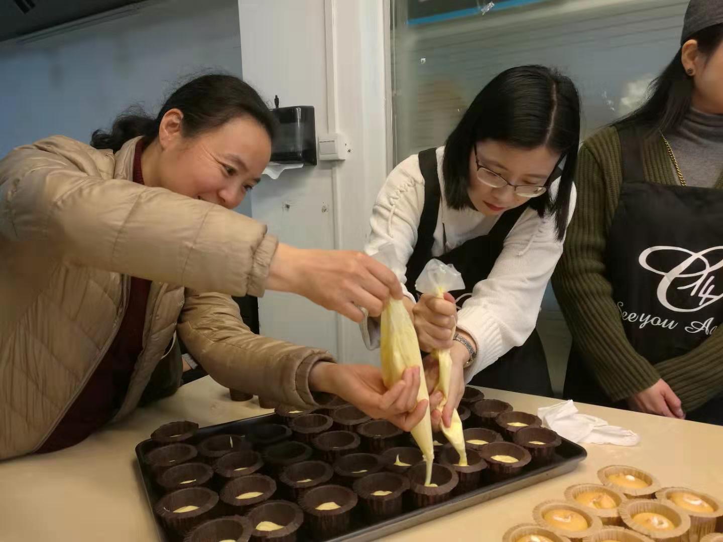 首先,工作室老师给女教工们讲解戚风纸杯蛋糕制作方法和技巧。老师们认真聆听,积极提问,看到工作室老师们的制作手法 ,纷纷跃跃欲试,很快就用工作室准备好的面粉、奶油、鸡蛋等材料,亲手制作了一炉炉香喷喷戚风蛋糕,然后在纸杯蛋糕上装裱各色花样,在一片欢声笑语中又get到了一项新技能。