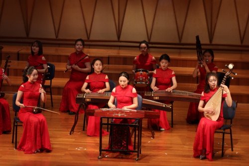 我院优秀研究生代表刘仪和本科生代表徐鑫阳演奏琵琶二重奏《敦煌乐舞图》