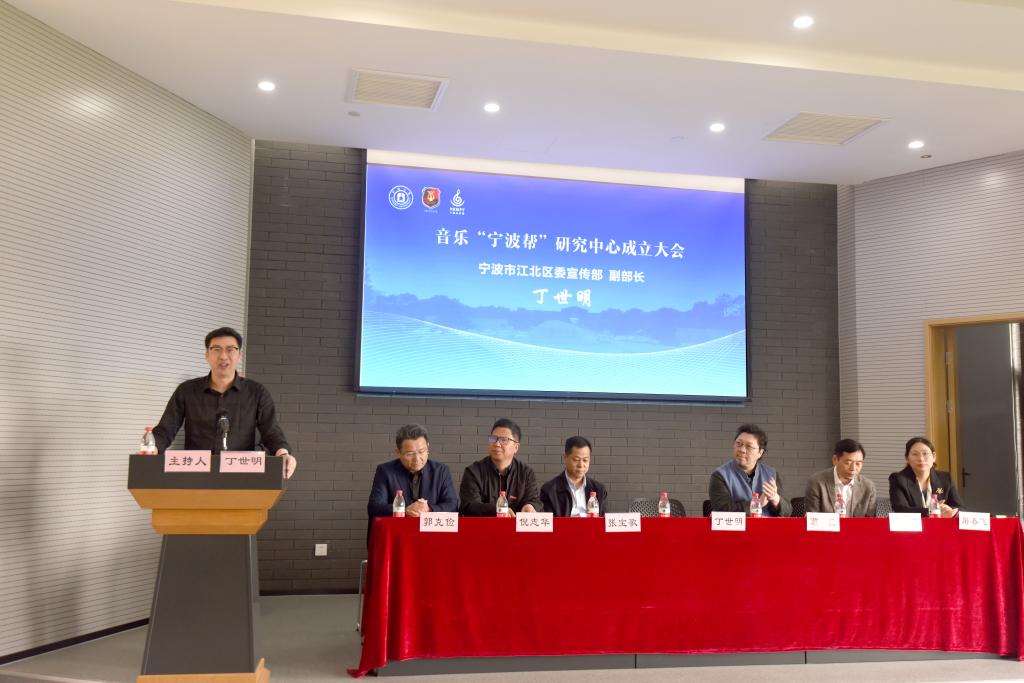 宁波市江北区委宣传部副部长丁世明在致辞中对音乐“宁波帮”研究中心的成立表示热烈祝贺,并细数了宁波籍音乐家响彻世界音乐界的盛事。他指出,党的十九大提出了“坚定文化自信,推动社会主义文化繁荣兴盛”的伟大号召。如今,宁波音乐港经过4年的建设,依托音乐宁波帮得天独厚的优势,成为了宁波音乐名片的主要驱动力,成长为享誉全国的宁波文化名片之一。此次音乐“宁波帮”研究中心的成立是打造宁波音乐港的一个重要里程碑,更是一个全新的起点。在此,他期望广大宁波帮、帮宁波人士多关注宁波发展,多助力宁波前行,多宣传宁波形象,与我们一起共创宁波更加精彩、美好的明天!