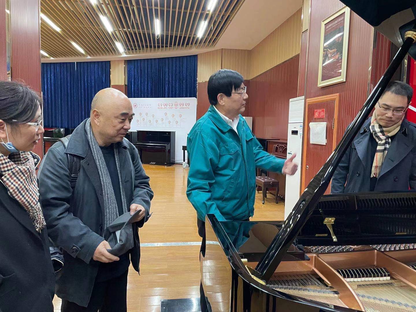 的老师们走访了钢琴陈列大厅和钢琴智慧教室,了解了海伦公司的发展历史和前景目标,并简要规划后续合作。